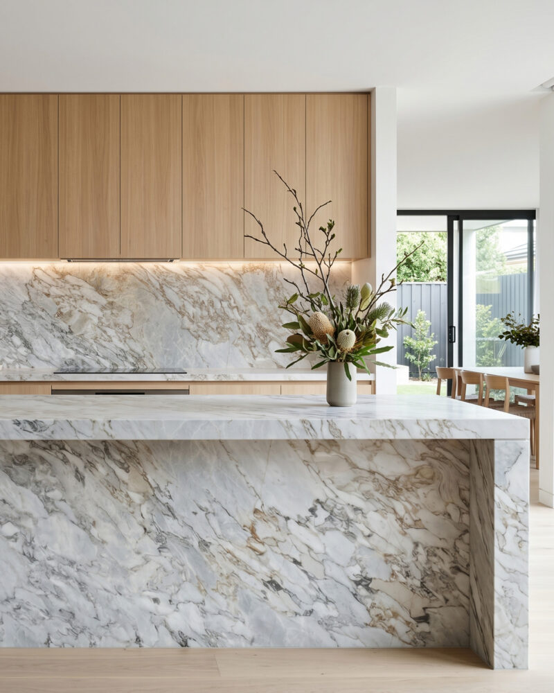 Quarried from Italy, Arabescato Vagli Marble features a soft white base with flowing grey veining and subtle warm undertones. Its natural movement creates a balanced and refined look, making each slab truly unique.