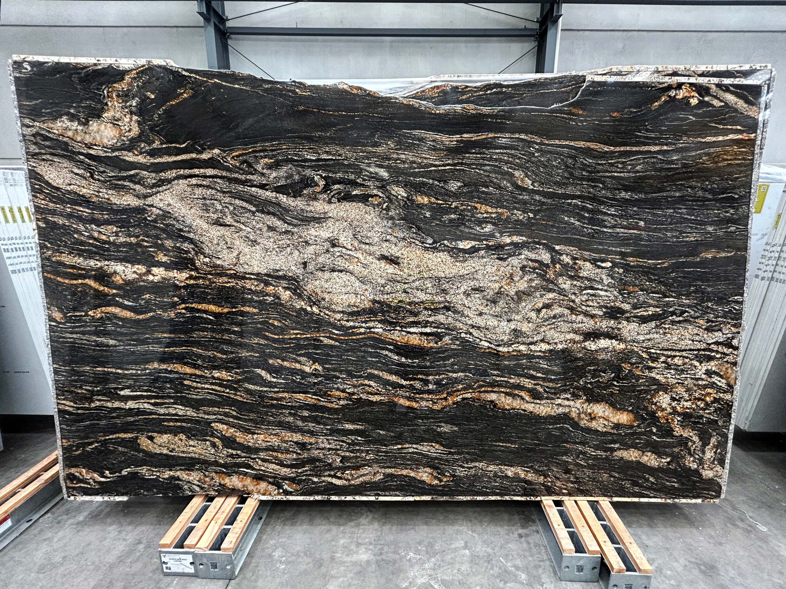 Quarried from Brazil, Black Fusion Granite features a deep black base layered with flowing gold and white veining that moves organically across the surface. The polished finish enhances its contrast and depth, revealing subtle sand-like textures when viewed up close. Bold yet refined, this granite makes a striking choice for kitchen benchtops, islands and feature applications, adding movement and visual interest to both modern and classic spaces.