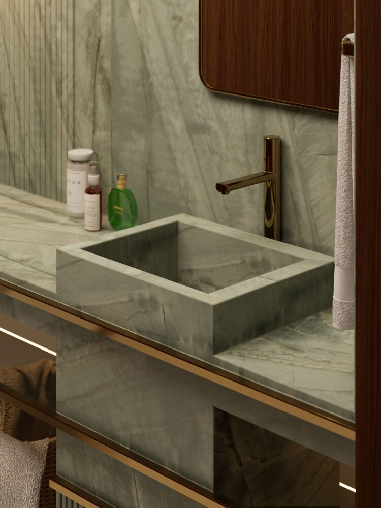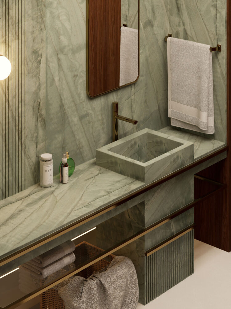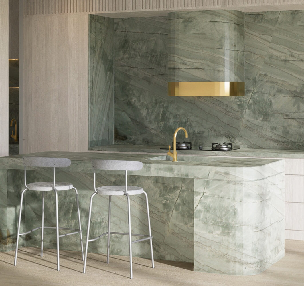 Quarried in Brazil, Emerald Green showcases a layered mix of soft and deep green tones, with gentle, organic movement flowing across the surface. Subtle shifts in colour and texture give each slab a naturally painterly quality, enhanced by the honed finish for a smooth, matte feel. Whether used for benchtops, feature walls, or flooring, Emerald Green introduces a calm, grounded presence — ideal for spaces that seek colour with quiet impact.
