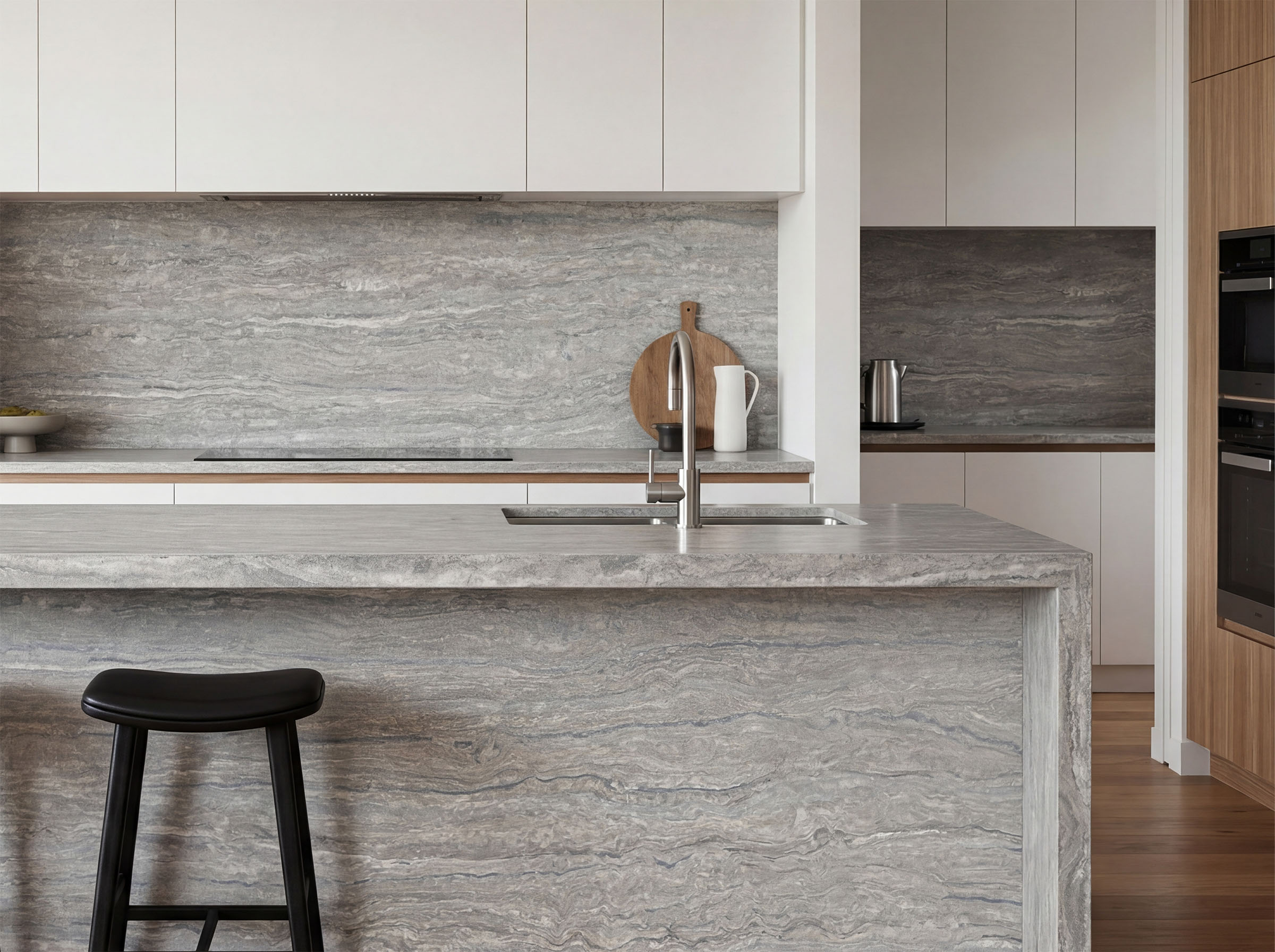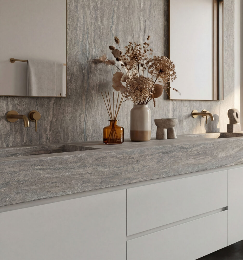 Inspired by Silver Travertine, Linea Oceano expresses the soft texture and natural movement found in authentic travertine. A refined surface that sits comfortably across both residential and commercial spaces.