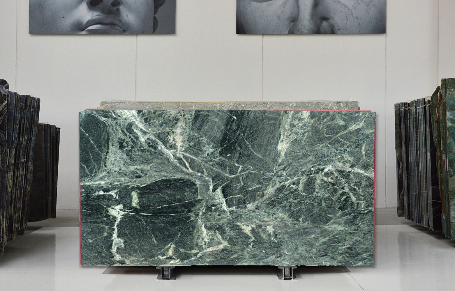 Quarried in Italy, Verde Alpi is a rich marble featuring a deep emerald green base interlaced with crisp, bright white veins. The natural veining flows organically across each slab, adding depth, movement, and a unique character to every piece. Its honed finish makes it ideal for benchtops, vanities, or feature walls, creating a bold yet sophisticated statement in any space.