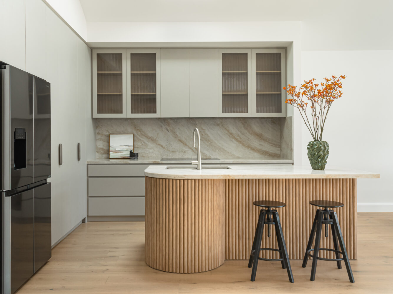 Inspired by the natural marble of the Taj Mahal. Our Mahal Ivory is a captivating masterpiece that has a blend of golden ,cream and brown hues, with pristine streak patterns flowing throughout the slab. It’s intricate pattern evokes the undulating dunes of the desert landscape, creating an ambiance that’s both luxurious and serene.